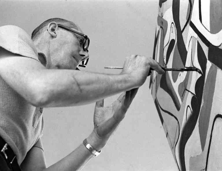 LCs graphisches Werk entstand im Verlauf von fünf Jahrzehnten und umfasst an die 200 meist handsignierte Kupferstiche, Lithographien sowie Radierungen, die einen integralen Teil seines künstlerischen Œuvres bilden. (Abb.: Le Corbusier 1937 bei der Arbeit am Gemälde «Plougrescant»: © akg-images / Paul Almasy; FLC / 2022, ProLitteris, Zurich)